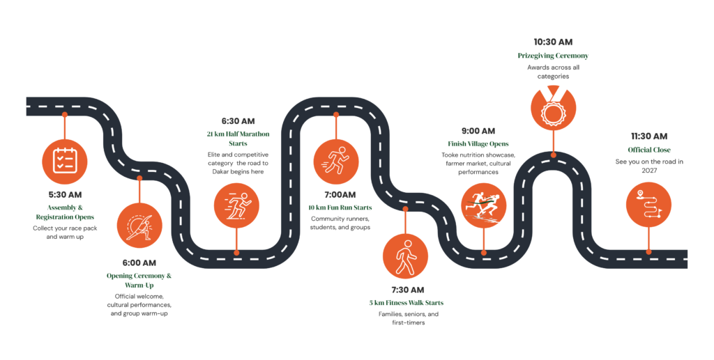 This is the path to Dakar 2026. The 21 km half marathon is the flagship race of the Olympic Day Tooke Run a competitive challenge set across the scenic highland terrain of Bushenyi District.